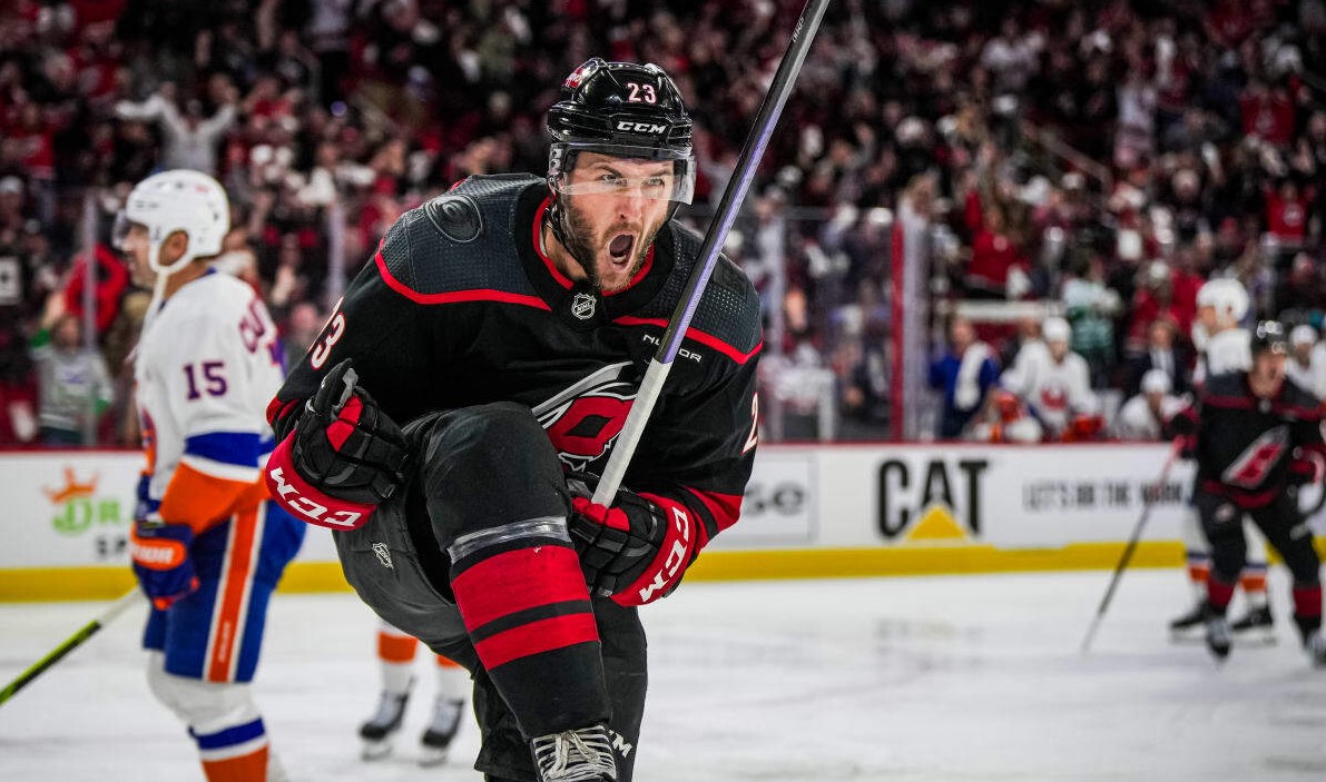 Aho, Martinook cap Canes’ late rally to beat Islanders for a 2-0 series lead