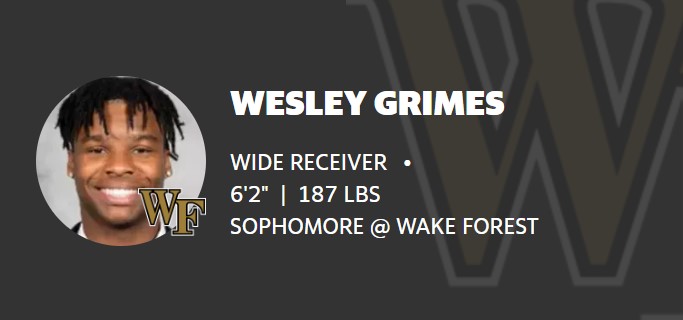 Wake Forest soph WR Wesley Grimes transfers to NC State